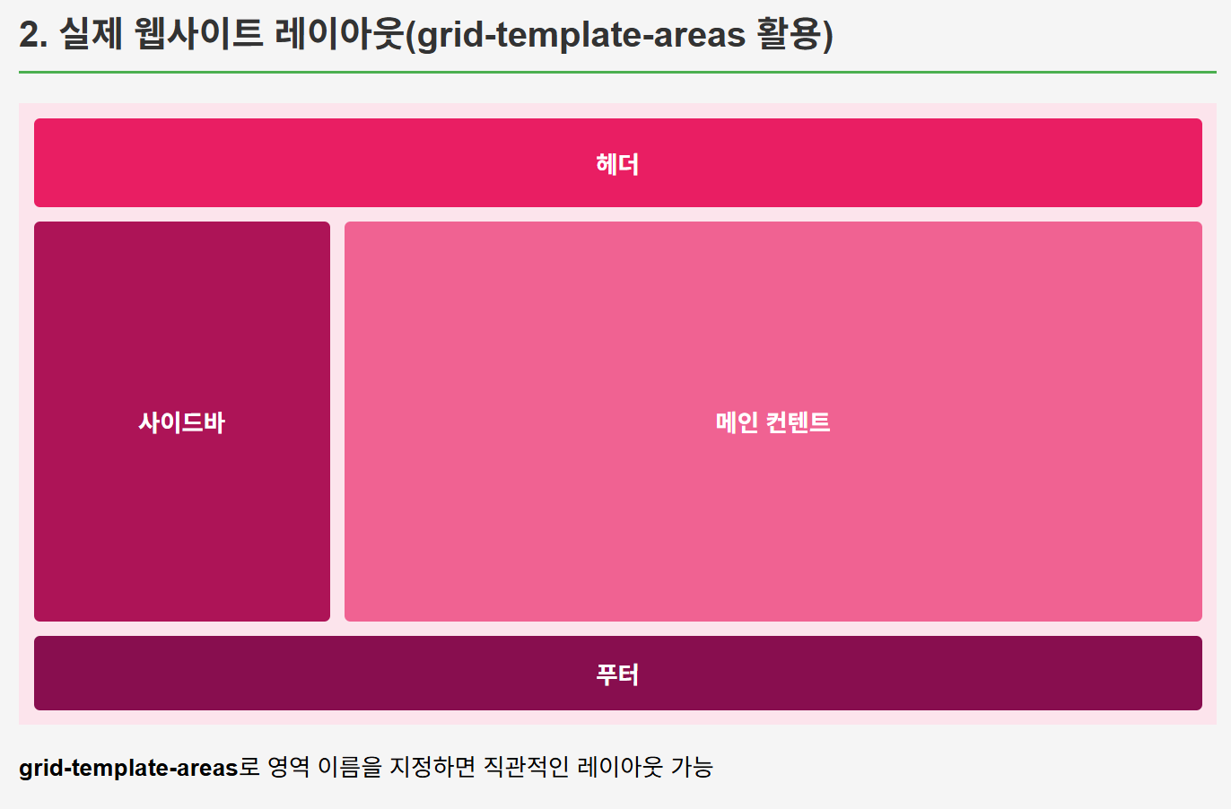 grid-template-rows: 60px 1fr 50px; /* 60px 1fr 50px => 헤더 60px 메인 유동폭 푸터 50px */